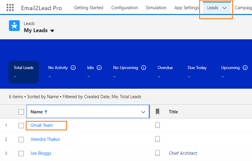 Once you add the email address g0 to Email2LeadPro App and click on Leads Tab . The email from google would create a lead, Open the lead