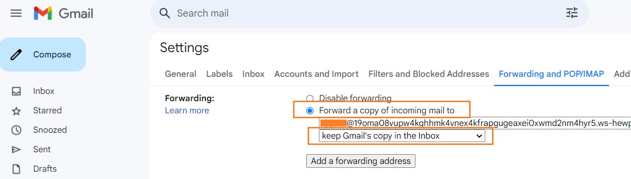 - Go to gmail click on Settings>>Forwarding and POP/IMAP>>Add a forwarding address.