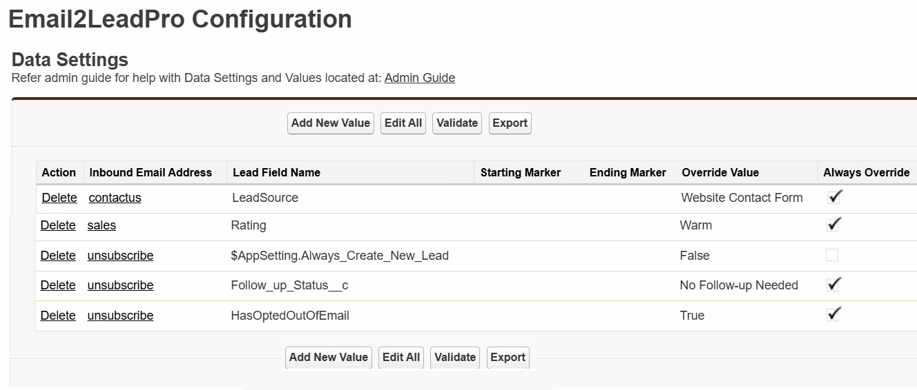 Configure Email2LeadPro App Settings